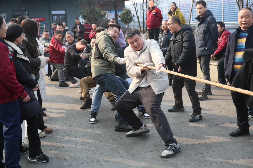 2月10日,久久物流公司举办2026年职工春节联欢活动,现场氛围热烈、团结奋进。活动设有拔河比赛、趣味活动和气排球表演赛。大家在轻松互动中增进交流、凝聚合力,展现出昂扬向上的精神风貌与奋勇争先的团队精神,为联欢活动增添活力。